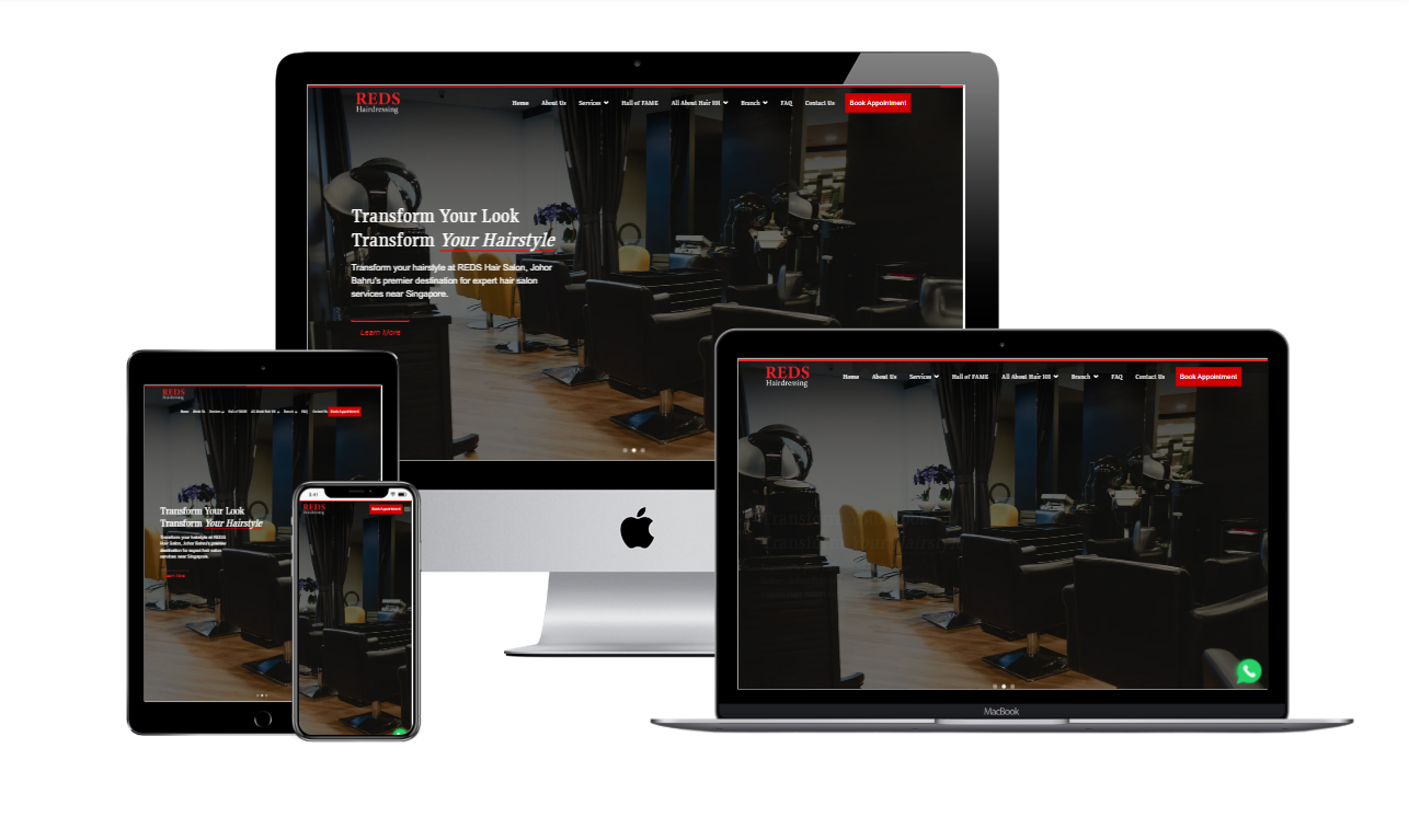 Reds Hairdressing is a boutique salon in Johor Bahru run by a passionate solopreneur. With a strong service offering and a loyal client base, the business needed a website that could handle marketing, bookings, and customer communication — without adding to the owner’s already full plate.